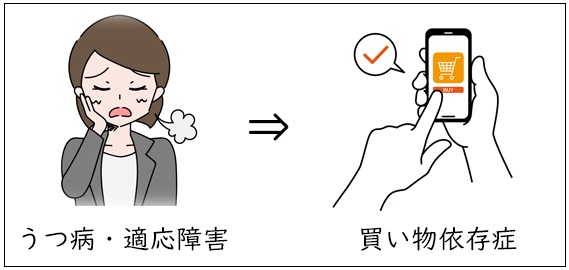 - 辛い気持ちが抑えられない ⇒ 気晴らしにと思い、衝動買いを繰り返す
