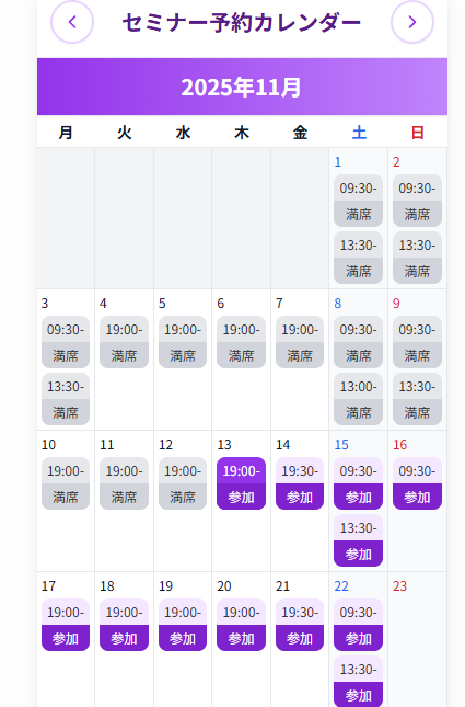 平日はもちろん、土日祝も開催されているので、ご都合の良い時に参加可能です。