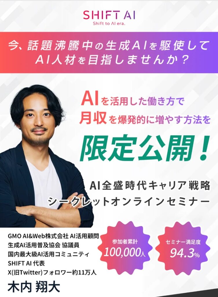 中でも、特におすすめなのが「SHIFT AI」のオンラインセミナーです。