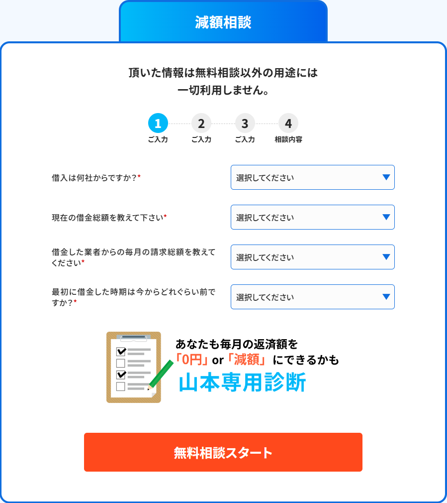 債務整理と聞くと「難しそう!面倒くさそう!」と感じるかもしれませんが、減額相談サービスを使えば、自宅にいながら借金がいくら減らせるのか匿名・無料で確認できます。