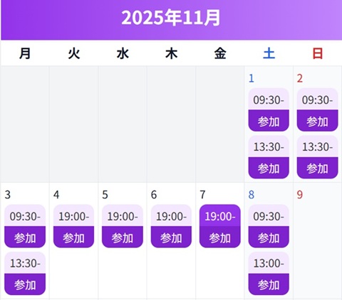 平日はもちろん、土日祝も開催されているので、ご都合の良い時に参加可能です。