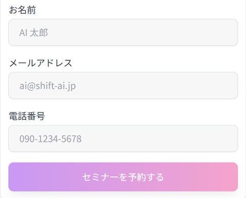 名前・メールアドレスなどを入力し、「セミナーを予約する」をタップすれば完了です。