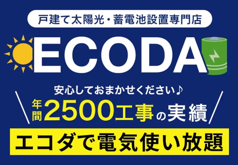 ECODAは、年間2,500件以上の工事実績を誇る太陽光発電・蓄電池の設置業者です。