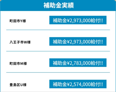 複雑で面倒な補助金の手続きは、専門のスタッフがほぼ全て代行し、これまでに200万円超えの補助金を受給した実績※4も多数あります。